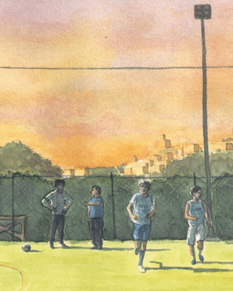 Come un puzzle che si completa, ecco la seconda parte della copertina del mio prossimo libro sul calcio a5. Curiosi di vedere la terza? Disegno Federico Buratti art
